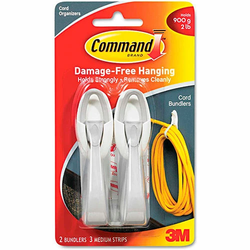 No more dangerous, tangled cords behind your computers, appliances and entertainment centers! Command™ Cord Organizers are perfect for work and home offices, as well as entertainment areas, where they keep cords organized and safely out of the way. Command™ Cord Organizers hold strongly on a variety of surfaces, including paint, wood, tile and more. They also come off cleanly – no holes, marks, sticky residue or stains – and if you need to re-organize your cords, it’s as easy as applying a Command™ Refill Strip, so you can use them again and again! Package contents 2 bundlers, 3 strips.