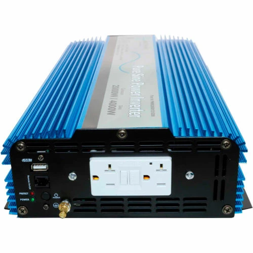 This AIMS Power pure sine inverter is capable of producing 2000 Watts of clean power ideal for running your sensitive electronics. Great for use in vehicles, boats, camping and emergencies where back up power is needed. The inverter features a resettable 20 Amp GFCI outlet, along with a USB outlet. An optional wired remote is available for this unit, AIMS Power part number REMOTEHF.