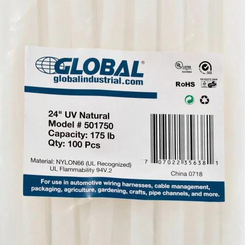 Global Industrialâ„¢ 24″ Cable Zip Ties, Natural w/UV, 175 lb, 100 pack
