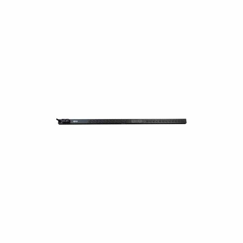 This 63-3/4″ vertical power distributuin unit supports 30A maximum capacity at 208/240V (agency derated to 24A). Includes 10′ attached line cord with L5-30P input plug. 24 5-15/20R outlets support networking equipment with 5-15P or 5-20P input plugs. Outlets are arranged in two separately metered and breakered 20A load banks (each with 12 5-15/20R outlets). Set of 2 built-in 2 character displays offer continuous information on PDU power consumption for each of the two built-in loading bank. Each built-in, easy to read, two-character LED display offers continuous PDU current monitoring data in one-amp increments. Switch-free unfiltered electrical pass-through reliably distributes UPS or generator power to multiple servers and vital networking equipment in rack enclosures, network closets and more. Toolless mounting enables simple installation in button-mount compatible racks. Included mounting brackets support vertical installation in standard 2 and 4 post racks or other surfaces, such as under-counter or wallmount configurations. Plug retention brackets keep vital equipment plugged in and continuously powered.